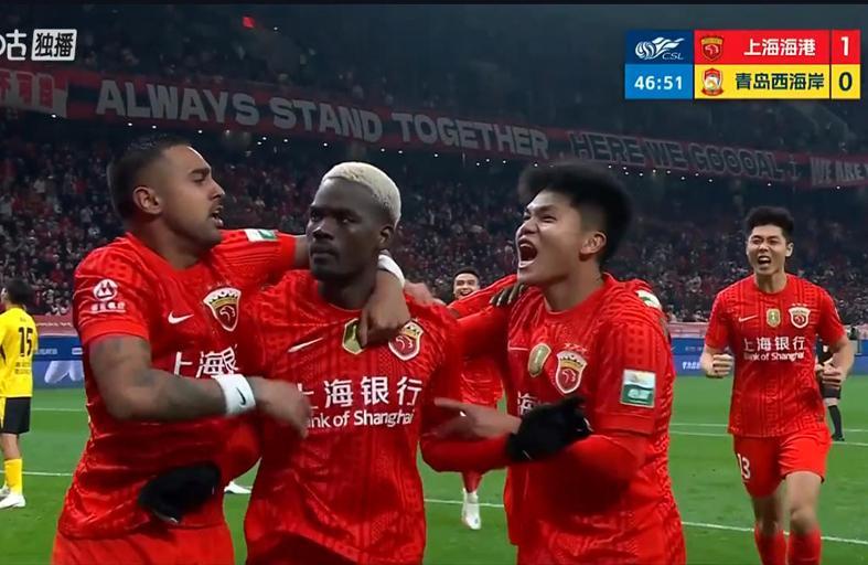最终,上海海港主场4-1大胜青岛西海岸,取得赛季中超首胜。